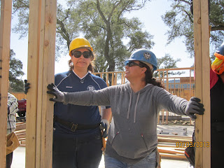 We started with our safety meeting on fire.  Facio then gave the assignments out.  We are working on getting some houses ready for trusses.  Debbie, Deena, and I were given a new job.  Our new job is tacking in the sheer walls.  Mauro, a student of Toby's, came out to help us.  We started on lot 6 Alfredo and Naty's house.  John, Michael, and Paul were given the job of preparing the front porches for pouring.  Brandon and Steve continued on adding the headers to the garages.  Maria, Jackie, Naty, Leticia, Evelyn, Delilah, Robert, Tony, Luisa, Andy, Lupe, Jacob, David, and Patricia continued with the framing.  We have a few more house to frame.  Pat, Alfredo, and Miguel worked on the last walls on lot 6.  Carlos came later and they worked on pluming the walls.   Dave worked on getting the nuts and straps on the houses. Leticia's family and Hailee came out to help frame.